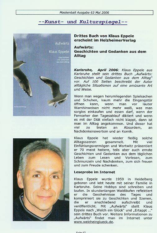 Maskenball Nr. 63, Mai 2006, Zeitschrift für Kunst-Kultur und Literatur, ISSN 01616-0118, Seite 17